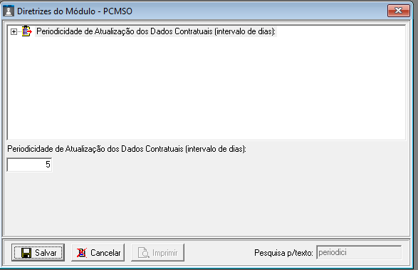 Localize a Diretriz Periodicidade de Atualização dos Dados Contratuais (Intervalo de dias) e altere para 5: