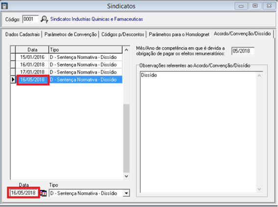 3) Todas as competências existentes na tabela RHVDBDissidio devem se referir ao período que o trabalhador esteve ativo na empresa, ou seja, entre o mês/ano de admissão e mês/ano de desligamento.