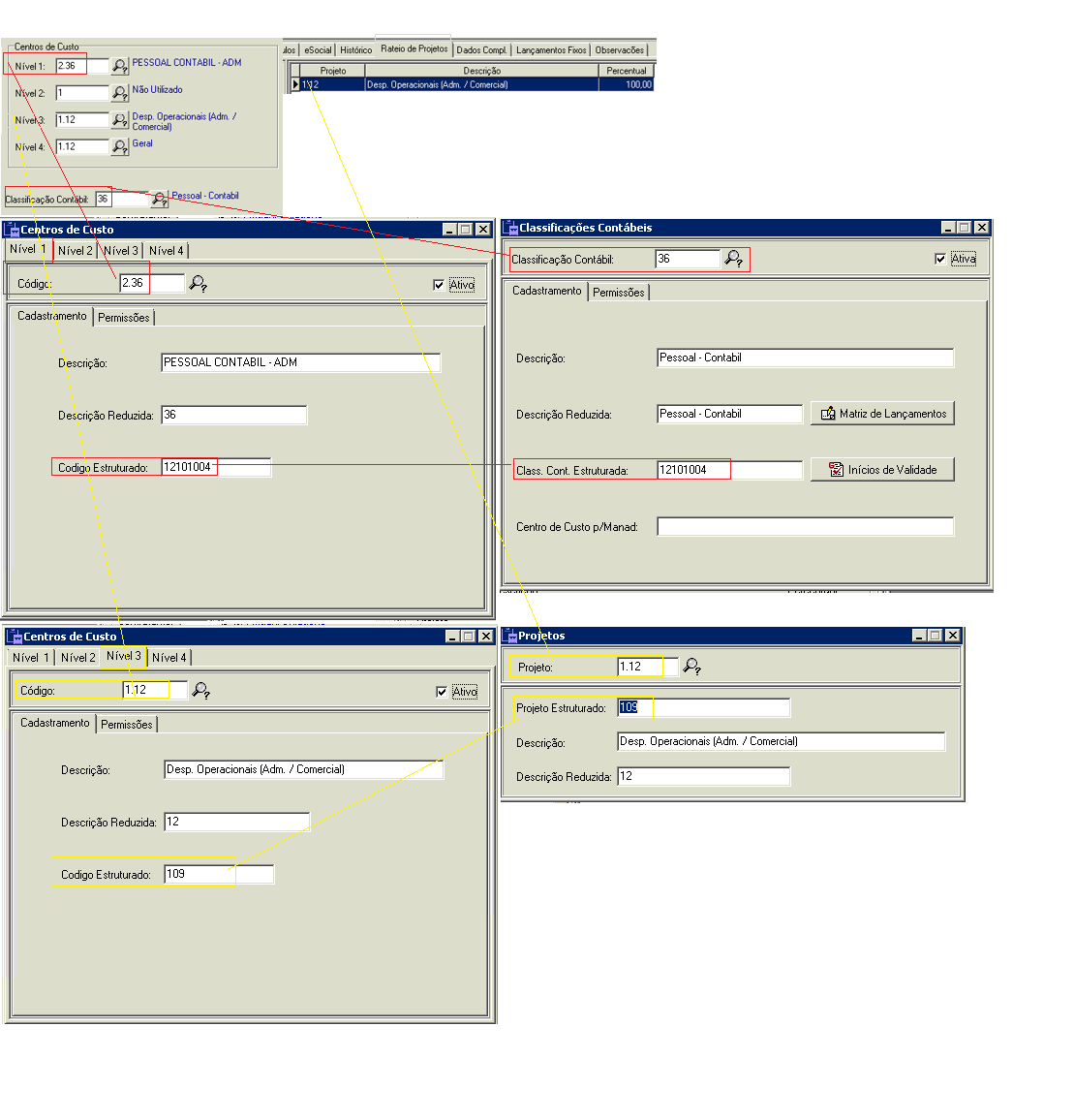 Quando o sistema identifica o mesmo código estruturado nestes dois campos, ele leva para o arquivo o código do CCC1.