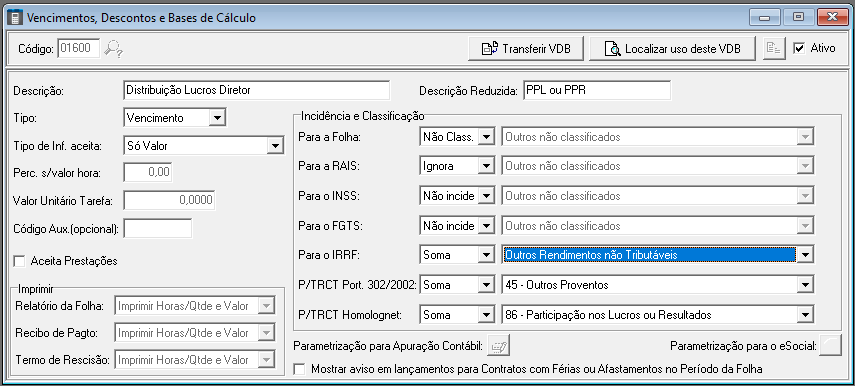 VDB 1601 - Programa de Partic. nos Lucros