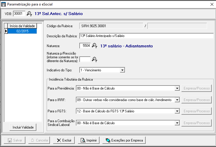 Outro detalhe importante é sobre a rubrica do 13º salário antecipado ele precisa estar nesta rubrica “5504”. Neste caso será necessário excluir os eventos e gerar de novo, após gere novamente o relatório de conferência do FGTS.