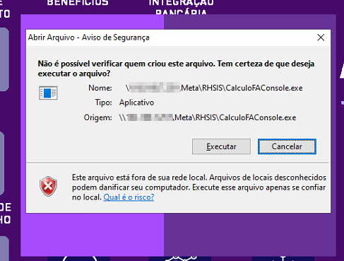 O sistema exibe um aviso de segurança ao realizar certos processos no SIRH, como a coleta de marcações.