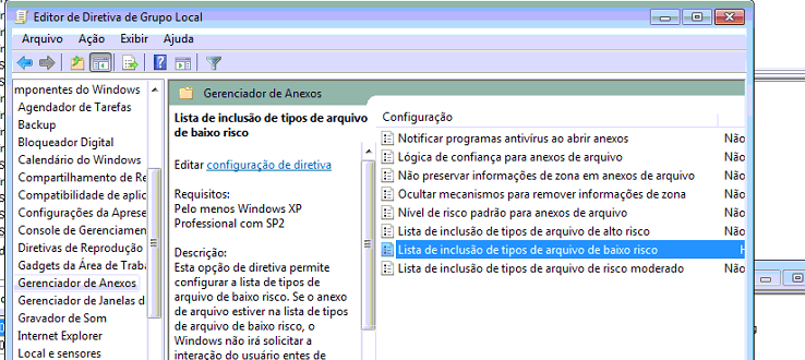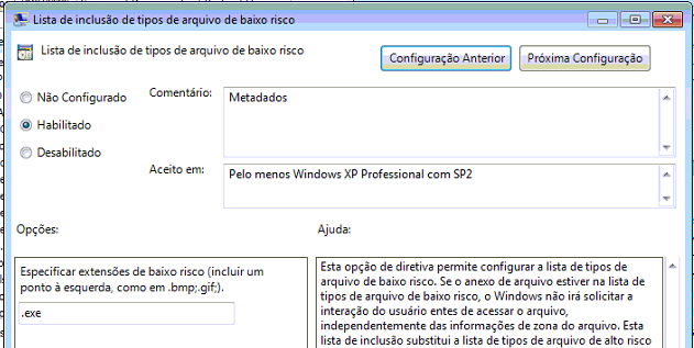 7. Clique em Lista de Inclusão de Arquivos de Baixo Risco e adicione .exe à lista.