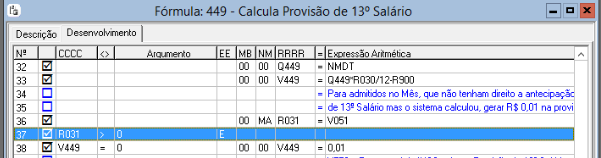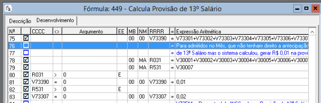 2. Verifique na fórmula 449 - Calcula Provisão de 13º Salário se tem a informação para calcular R$ 0,01 nesta situação: