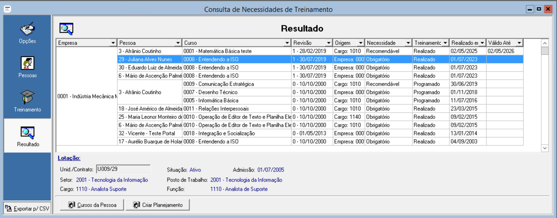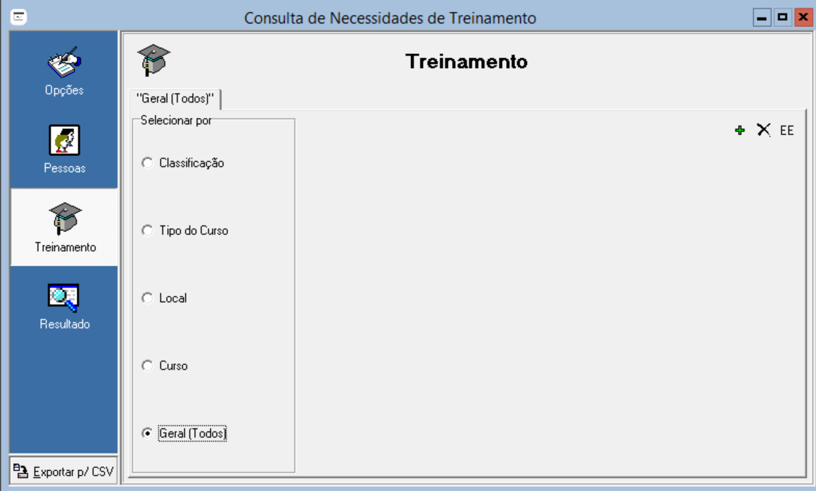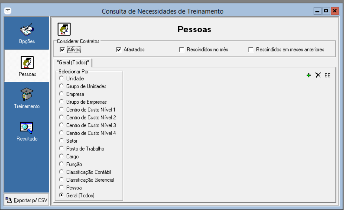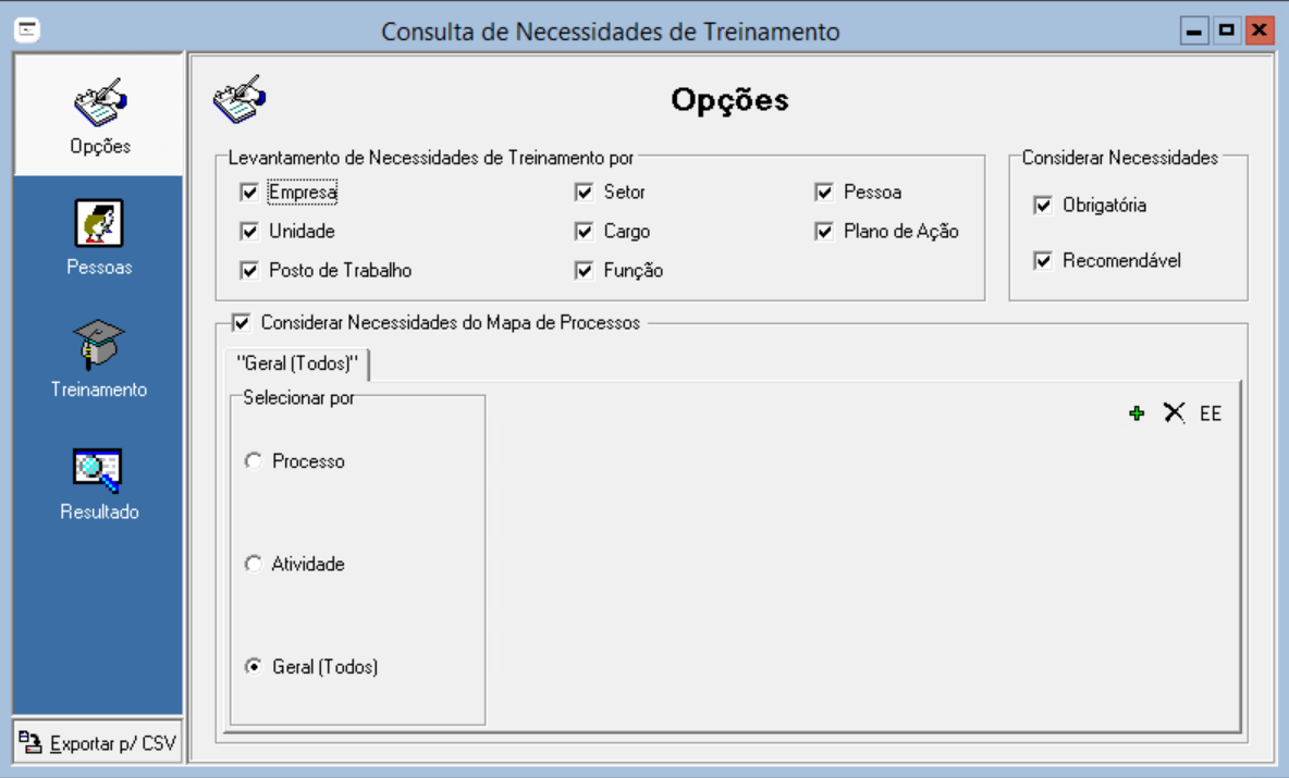 No módulo de Treinamento e Desenvolvimento acesse o menu: Consultas > Pessoas e Cursos > Necessidades de Treinamento: