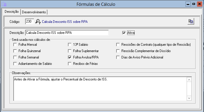 Acesse o menu Arquivo > Fórmulas de Cálculo. Informe um código livre e inclua conforme modelo.