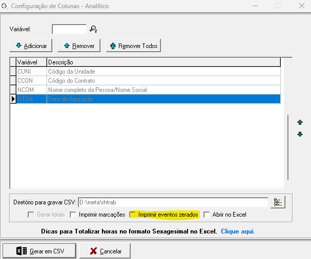 - 30/06/2025 - Realizado uma implementação no relatório Rhpr2020. Na opção gerar para Excel /Analítico, foi incluído nova opção para imprimir ou não registros com eventos Zerados.