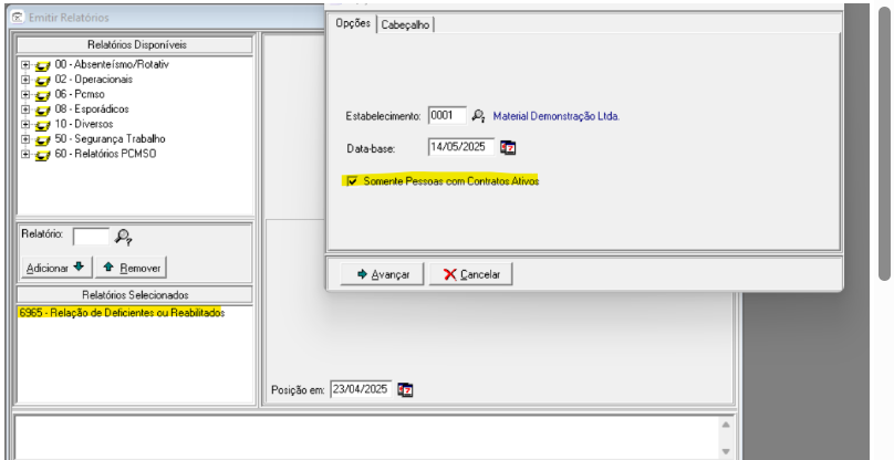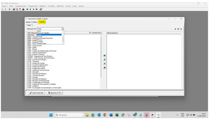 Módulo: Saúde Ocupacional/Relatórios especiais/Emitir Relatório
