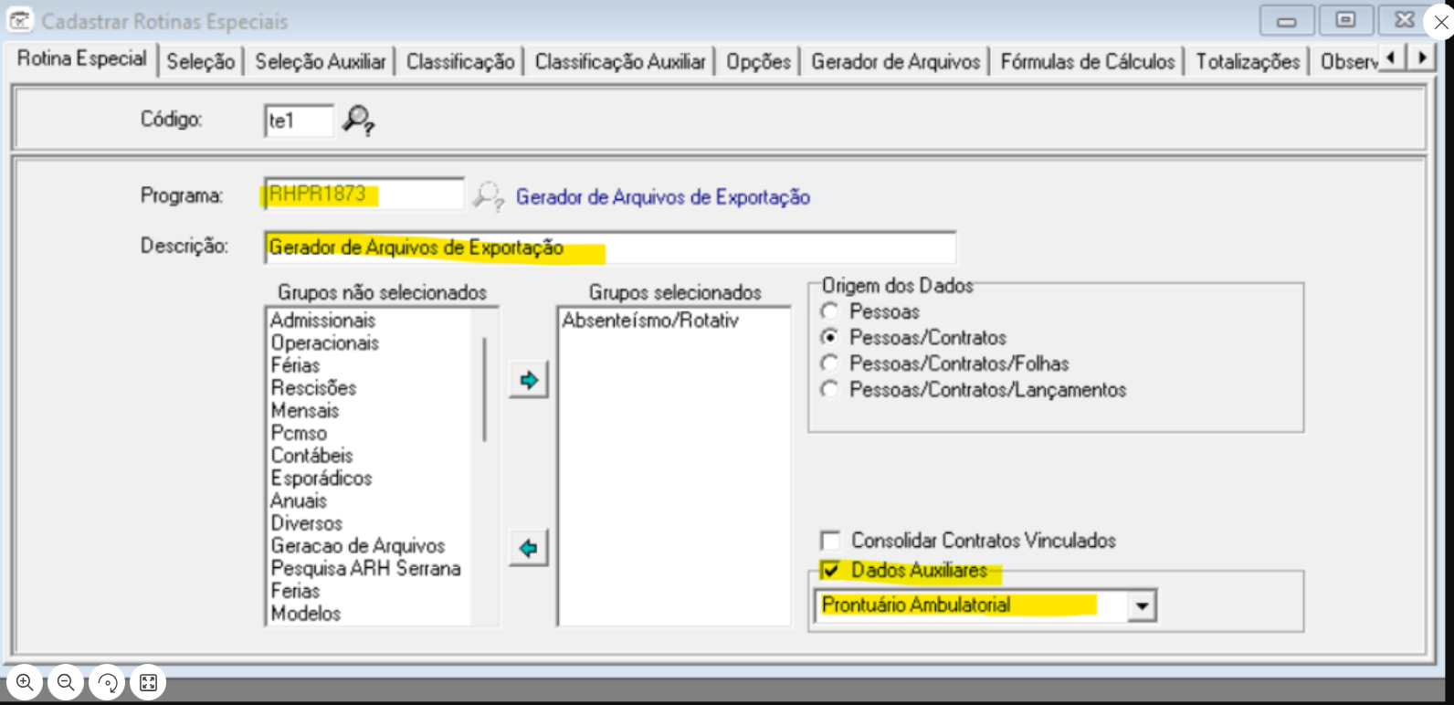 --> 446424 - Liberação de tabela de prontuário ambulatorial para cadastro de rotinas especiais