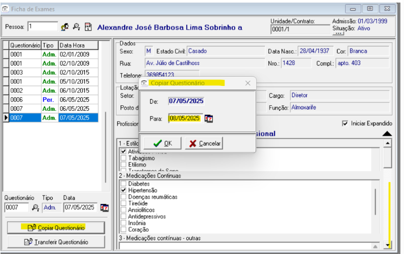 Botão "Copiar Questionário" (cria novo questionário na nova data com os dados do questionário anterior)