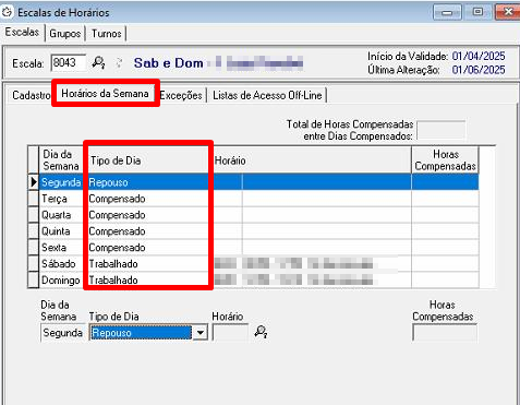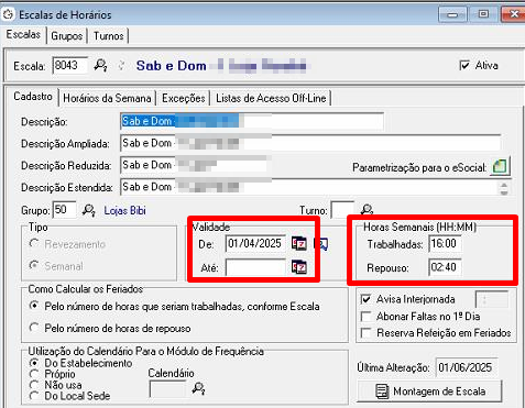 - O campo Horas Semanais inclui a quantidade de horas do Repouso?