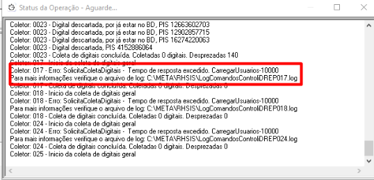 SolicitaColetaDigitais - Tempo de resposta excedido. CarregarUsuarios - 10000