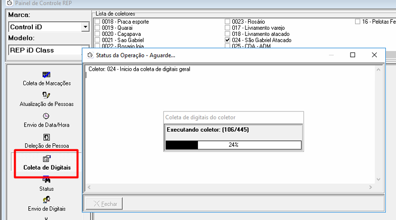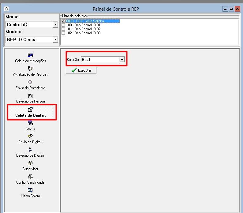 Ao executar a Coleta de Digitais, na seleção Geral...