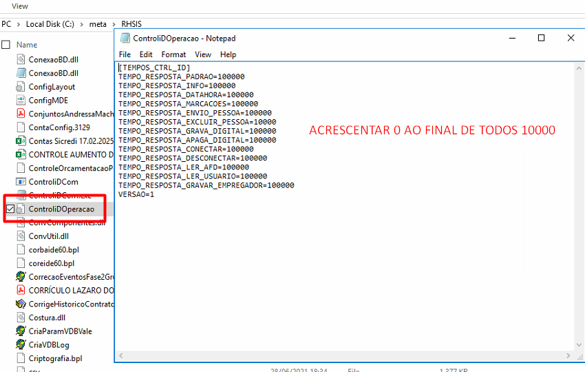 - Dentro da pasta, abra o arquivo ControliDOperacao.ini.
