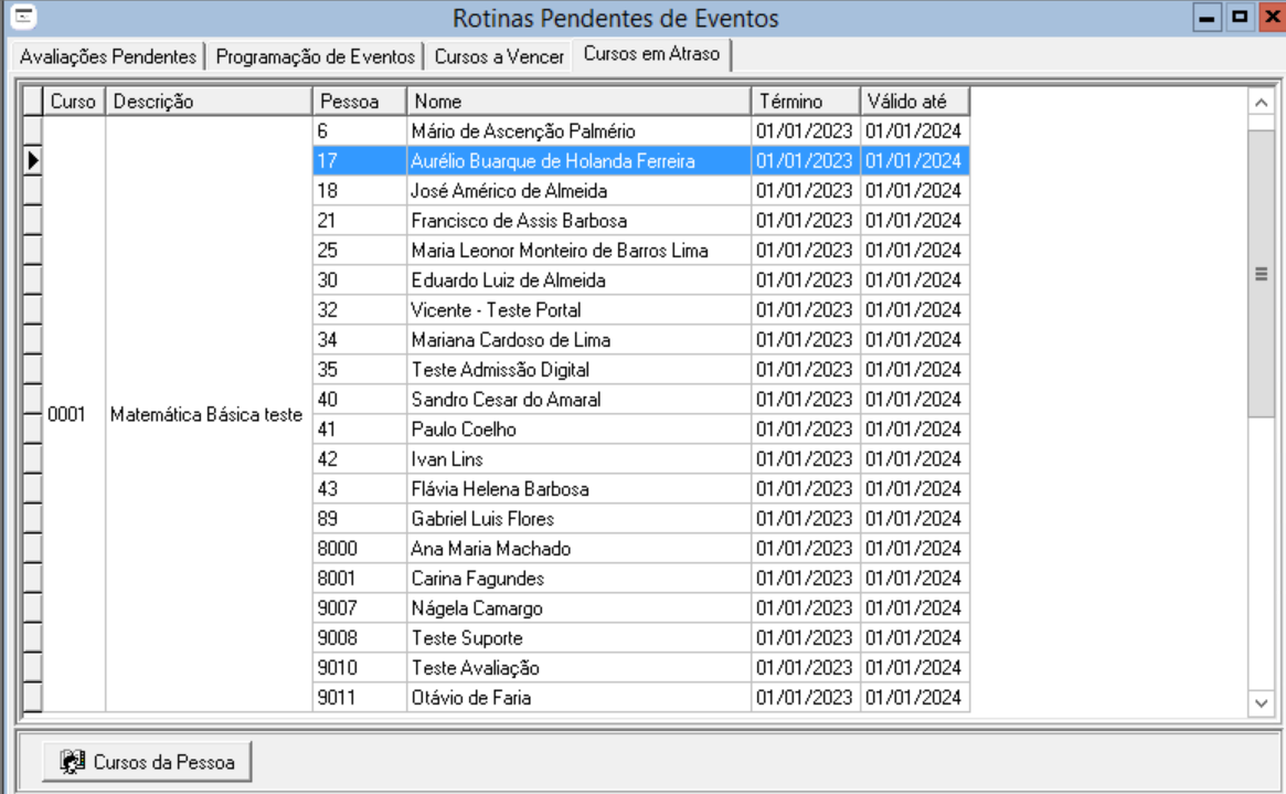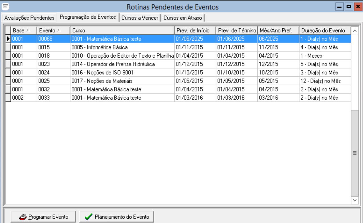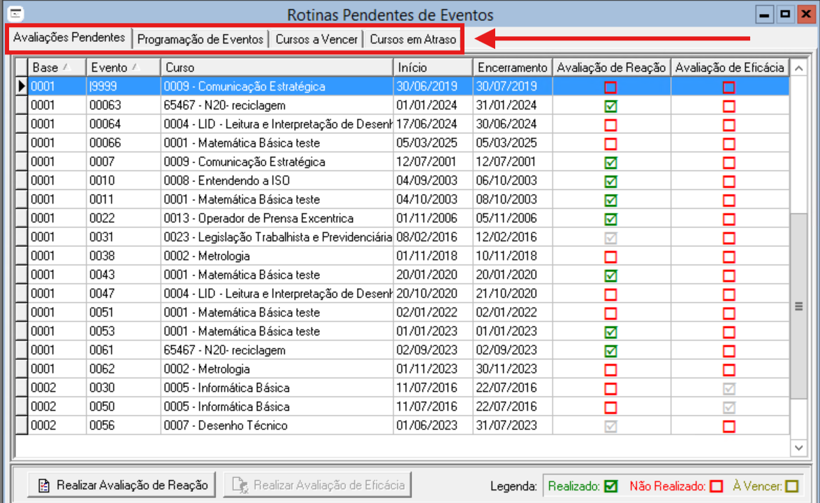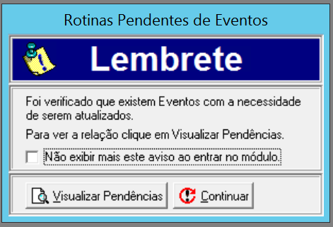 - Ao acessar o módulo, será exibido o Lembrete de Rotinas Pendentes de Eventos.