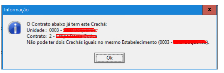 Não pode ter dois Crachás iguais no mesmo Estabelecimento (X - X).
