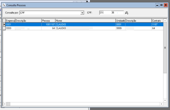 1. Acesse o cadastro de pessoa referente ao contrato inativo/reincidido.
