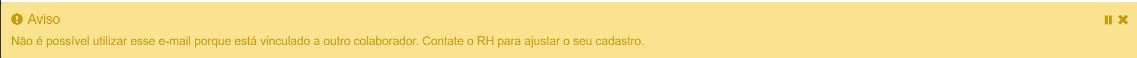 Não é possível utilizar esse e-mail porque está vinculado a outro colaborador. Contate o RH para ajustar o seu cadastro.