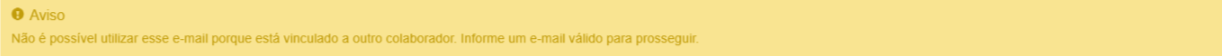 Não é possível utilizar esse e-mail porque está vinculado a outro colaborador. Informe um e-mail válido para prosseguir.