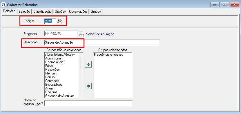 👉 Caso o relatório ainda não esteja cadastrado, siga os passos descritos neste artigo: Como Cadastrar Relatórios.