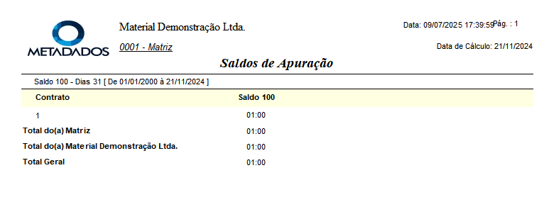 Este relatório pode ser emitido com saldo por contrato, listando colaborador por colaborador, ou em formato resumido, conforme a configuração desejada.