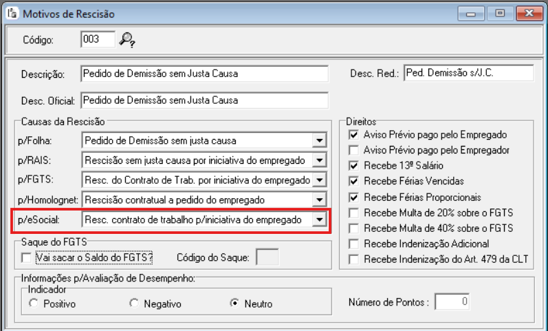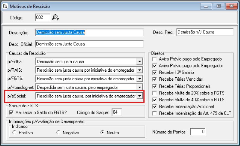 👉️ Caso seja necessário cadastrar um novo motivo de rescisão, siga os passos do artigo Como Cadastrar um Motivo de Rescisão.