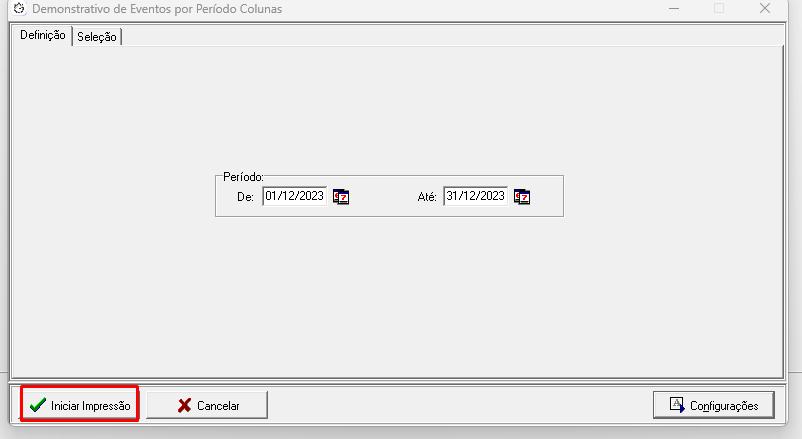 Após configurar o Relatório RHPR2110, você poderá utilizá-lo para gerar demonstrativos de eventos por período. Siga as instruções abaixo para utilizar o Relatório: