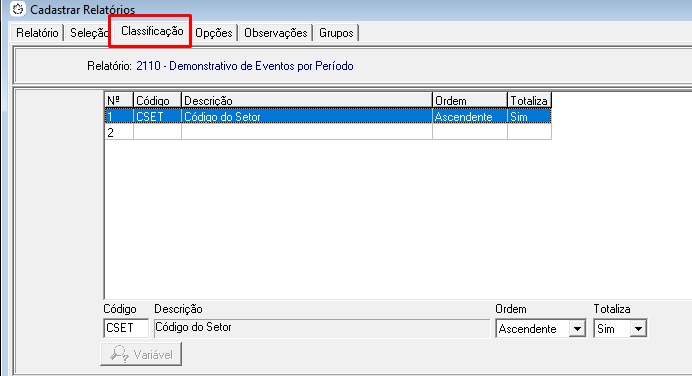 2.2 Localize e abra o Relatório 2110 ou o código cadastrado do relatório: