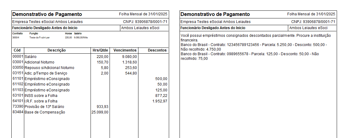 Quando há empréstimo com desconto parcial, o anexo é impresso com um alerta indicando essa condição.