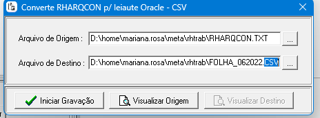 Programa RHPECONORACLE alterado para gravar arquivo em CSV.