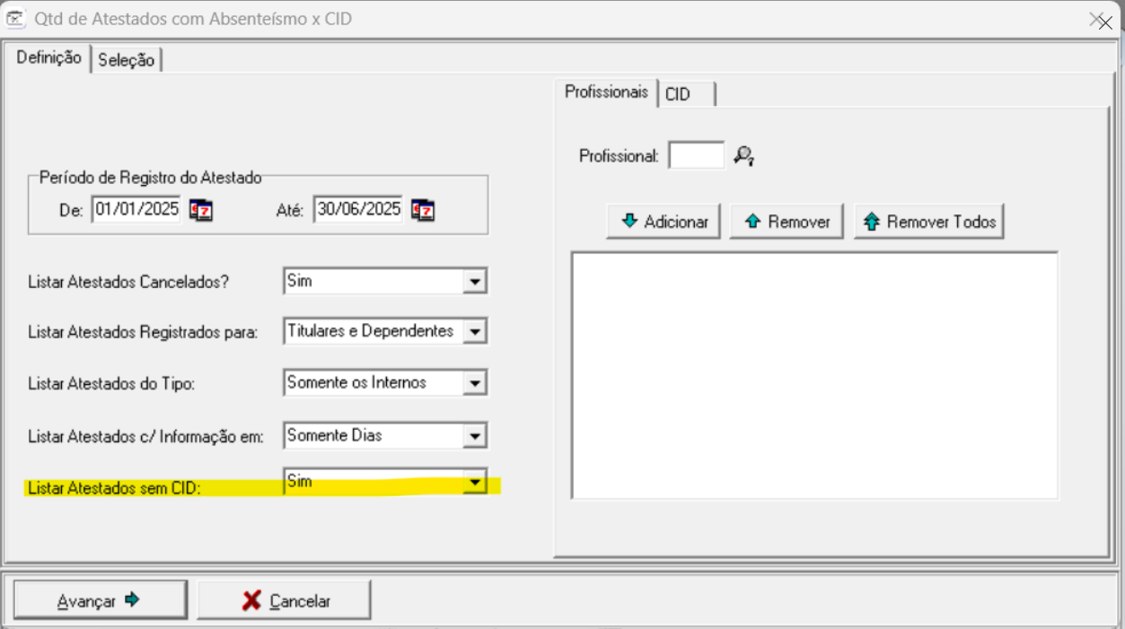 MD112942 - Emissão de relatório de atestados - opção para selecionar atestados que não possuem CID