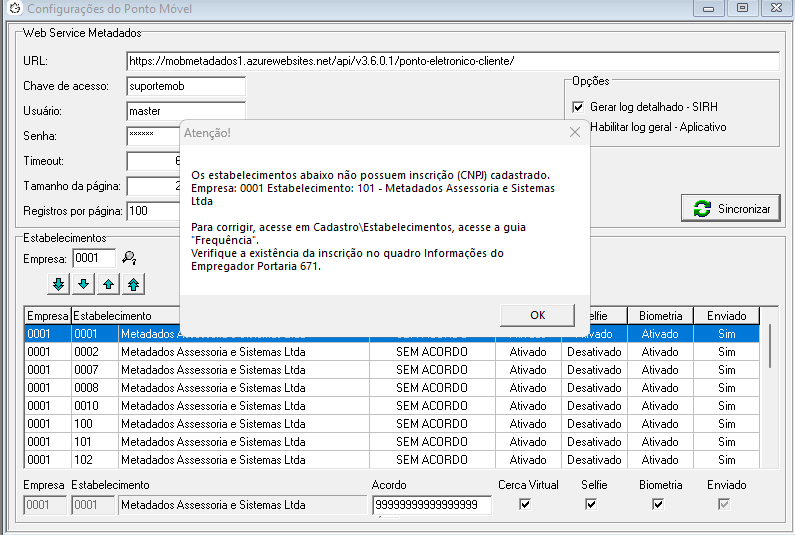 - Implementado ao sincronizar as empresas/estabelecimentos com o EasyMob para ele listar os Estabelecimentos que não possuírem CNPJ cadastrado na aba "Frequência", para facilitar a identificação e ajuste dos mesmos.