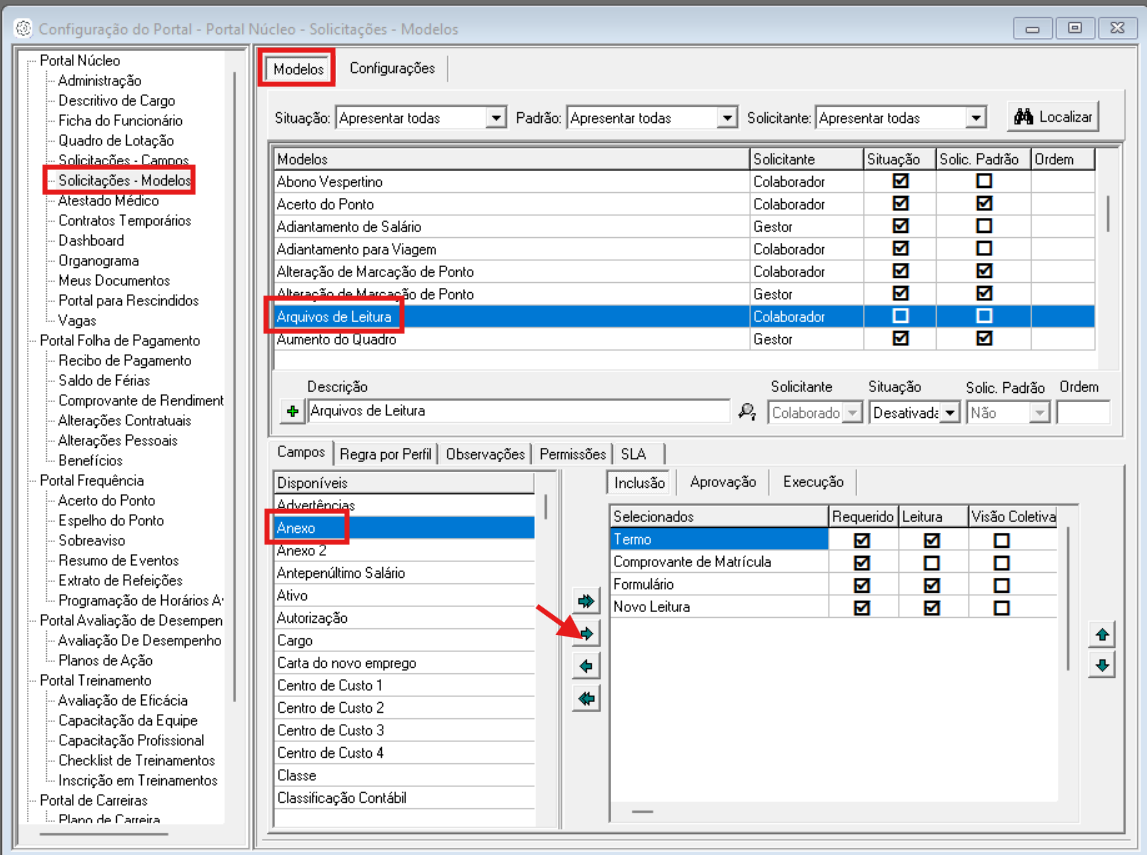 2.3 Na guia Modelos, selecione a solicitação em que deseja incluir o campo.