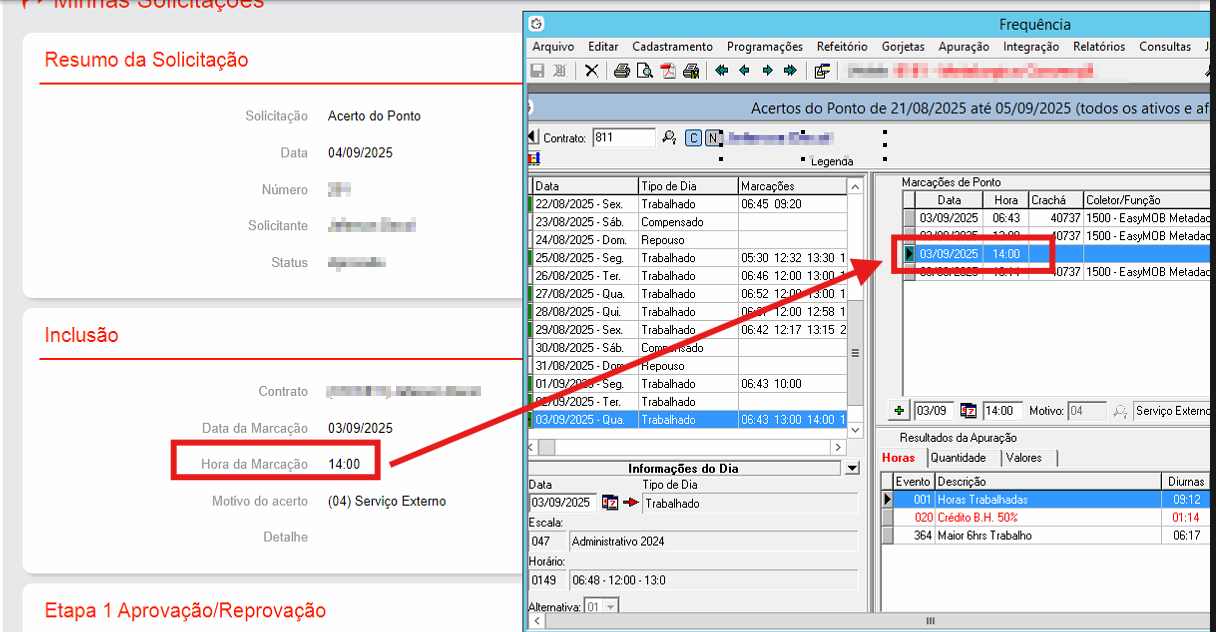 Ao aprovar a Solicitação de Acerto de Ponto e aprovar marcação, pode ocorrer o erro: