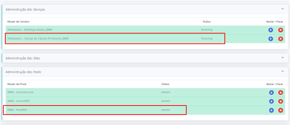 Verificar serviço: confirme se o serviço CalculoFAConsole (ou serviço de recálculo equivalente) está em execução no servidor.