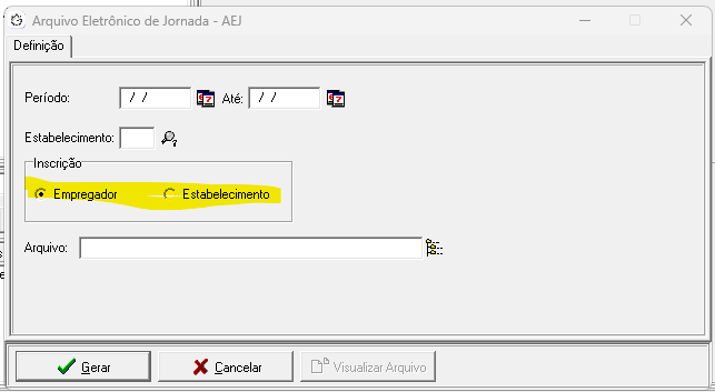 - 26/09/2025 - Na geração do AEJ, incluído opção para inscrição do Empregador ( Padrão ) ou por Estabelecimento caso o Fiscal solicite. https://suporte.metadados.com.br/hc/pt-br/articles/14041529885467-Como-Gerar-o-Arquivo-AEJ-Arquivo-Eletr%C3%B4nico-de-Jornada