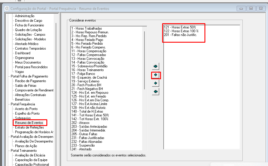 - Em Portal Frequência, clique em Resumo de Eventos.
