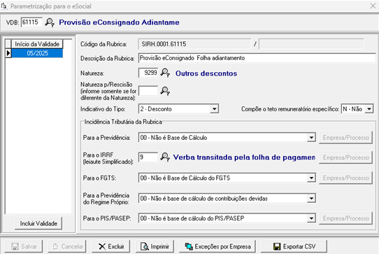 👉️ A partir da versão 4.38.0 (outubro/2025), o sistema Metadados passa a realizar automaticamente o cálculo da provisão do empréstimo consignado na folha de adiantamento.