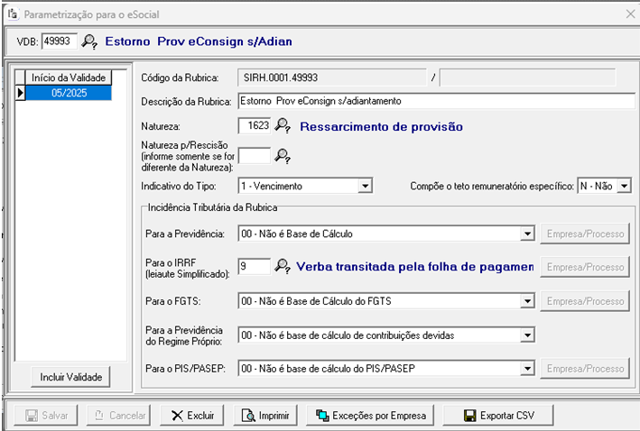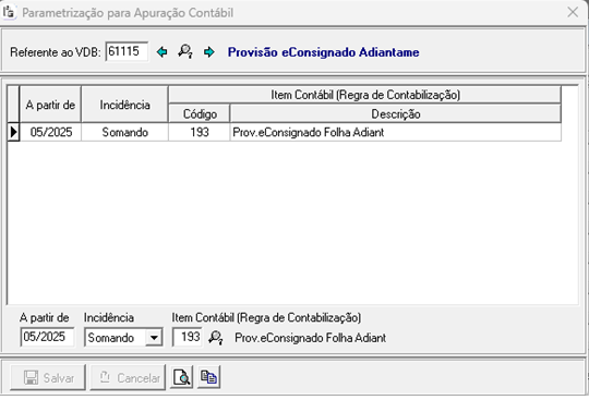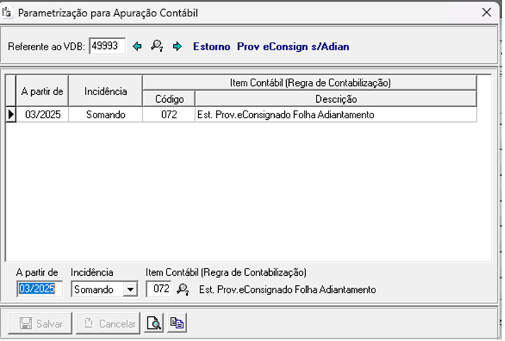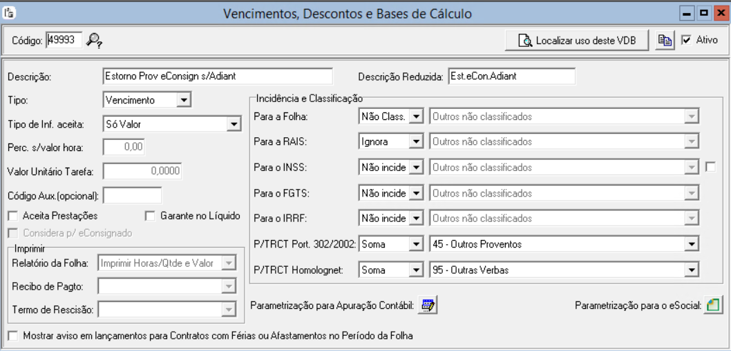 ➡️ Importante! Cadastre o VDB de Estorno de Provisão, utilizando os mesmos VDBs já empregados para lançamentos manuais ou para o cálculo por fórmula, conforme o procedimento anterior.