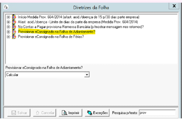 2.2 Clique na diretriz Provisionar eConsignado na Folha de Adiantamento e selecione Calcular.