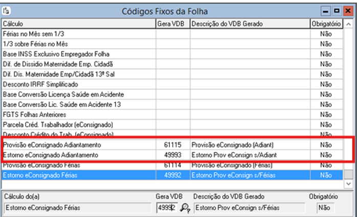 - Caso existam dois VDBs para apuração do valor de adiantamento, será necessário trocar o VDB nos códigos fixos para realizar o cálculo ou contratar o serviço corretamente.