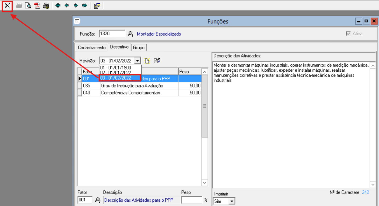 - No módulo Treinamento e Desenvolvimento, acesse o menu: Arquivo > Tabelas do Treinamento > Funções.