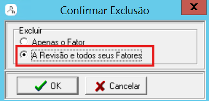 Marque a opção A Revisão e todos seus Fatores e clique em OK para Confirmar Exclusão.