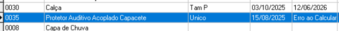 O que fazer quando no Módulo de Segurança do Trabalho, na tela Registros/Registros de Entrega de EPIs sistema apresentar a informação Erro ao Calcular.