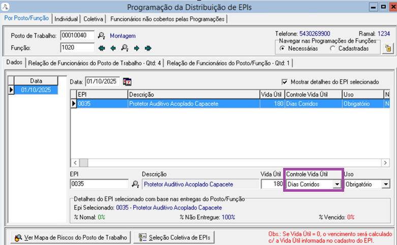 A mesma informação deverá estar na Programação da Distribuição de EPIS.