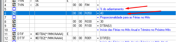 1. No Módulo Folha de Pagamento, verifique se a fórmula do adiantamento contém as parametrizações que indiquem o percentual de desconto, considerando que a provisão do Econsignado no adiantamento é realizada com base no percentual aplicado na parcela do empréstimo do mês.