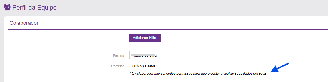 - Acrescentado texto "O colaborador não concedeu permissão para que o gestor visualize seus dados pessoais" no Perfil da Equipe (visualização gestor) se o colaborador selecionado não tiver autorizado a visualização de seus dados pessoais por parte do gestor.