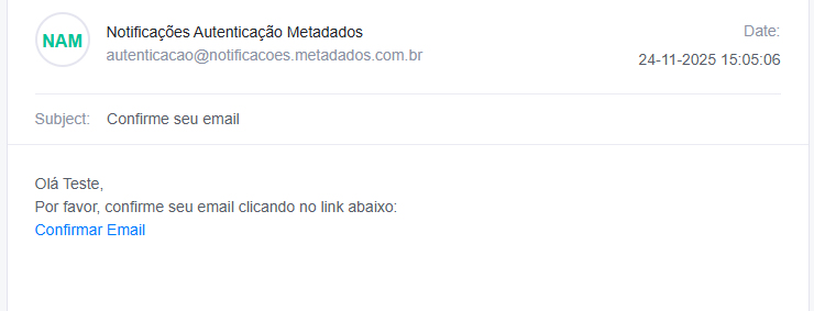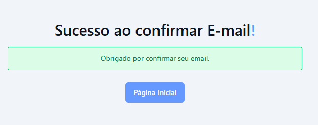 Ao clicar em Confirmar email, o usuƔrio estƔ novamente apto a utilizar as APIs.