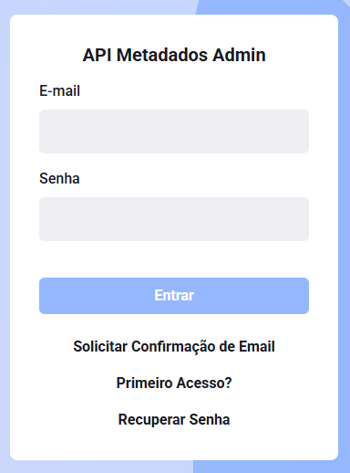 Para esses usuƔrios Ʃ necessƔrio entrar no link de acesso da API do cliente, por exemplo, https://apimetadados.metadados.com.br/admin e clicar em "Recuperar Senha":