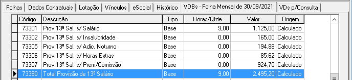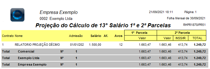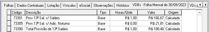3. O relatório faz a simulação com base no VDB Total Provisão de 13º Salário.